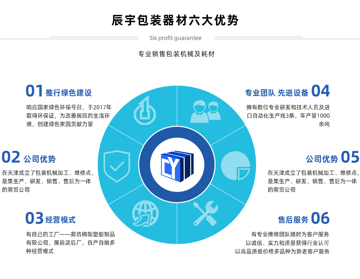 天津辰宇包裝器材有限公司原天津市辰宇商貿(mào)有限公司,位于天津市南開區(qū)密云一支路新南馬路五金城二區(qū)33棟106號,本公司主要經(jīng)營:打包帶,打包機(jī)系列,封箱機(jī)系列,纏繞機(jī)系列,拉伸膜,膠帶,尼龍繩,其他包裝耗材等產(chǎn)品 公司產(chǎn)品質(zhì)優(yōu)價廉,暢銷全國各大城市。同等質(zhì)量比價格,同等價格比質(zhì)量,我們確保質(zhì)量,價錢合理,交貨迅速及時。公司始終秉承“精益求精,鑄造品質(zhì)的典范”的經(jīng)營理念,真誠為廣大客戶提供真誠的服務(wù)! 天津市辰宇包裝器材有限公司,感謝廣大新老客戶的鼎力支持,竭誠歡迎社會各界朋友前來洽談業(yè)務(wù),愿真誠合作攜手共創(chuàng)美好未來!